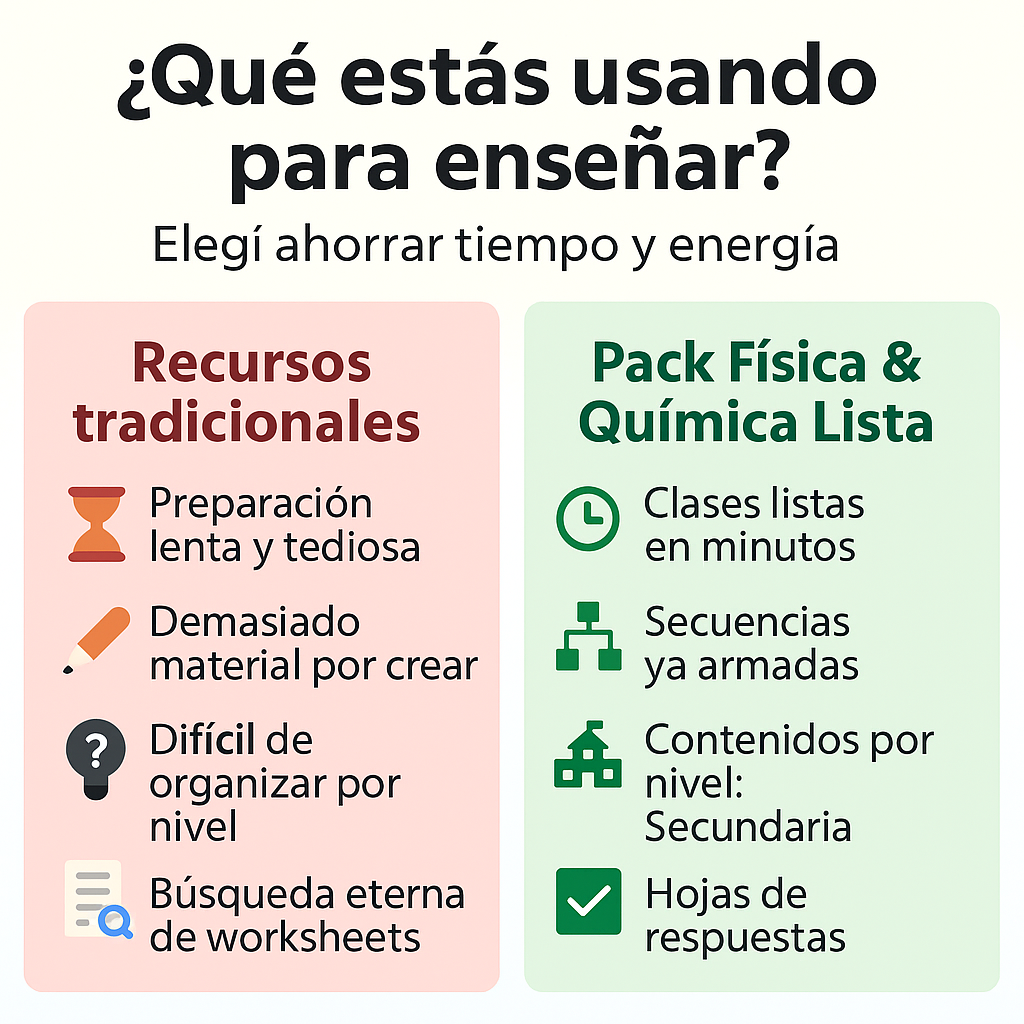 🔑 Lo que te falta es el recurso que ahorra tiempo, reduce el estrés y te permite enseñar Física & Química con claridad.